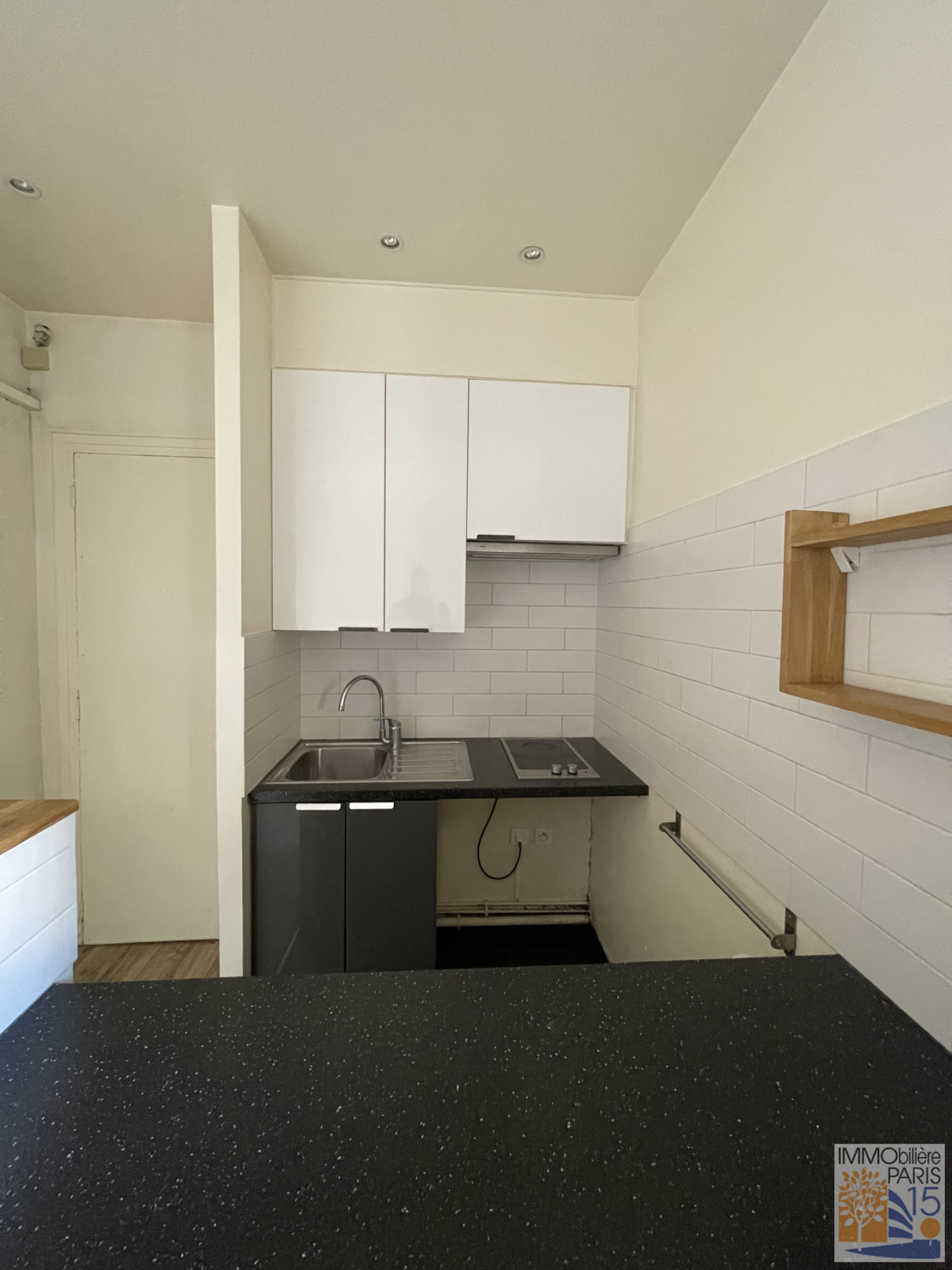 Il est composé d’une grande pièce de vie disposant de deux fenêtres, avec coin cuisine ouvert, et d'une salle de douche avec WC.