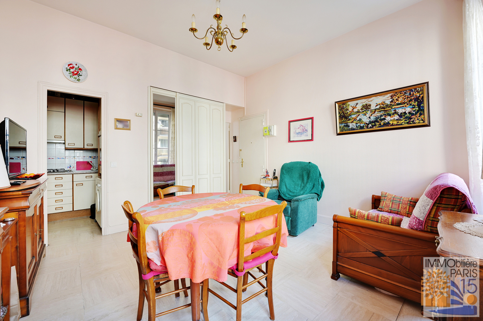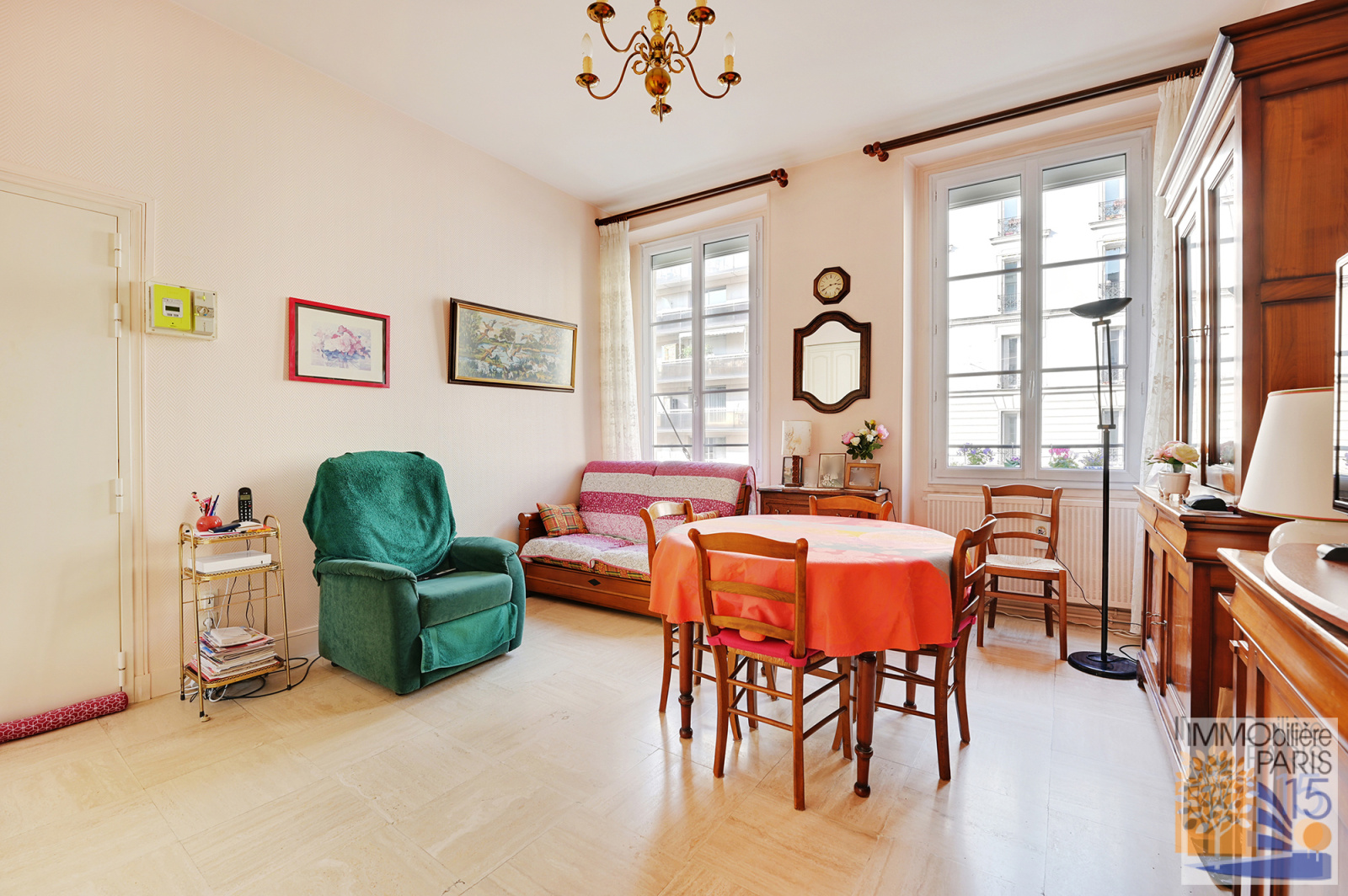 L'agence Immobilière Paris 15 vous propose en exclusivité un charmant appartement 2 pièces idéalement situé au coeur de la zone commerçante de la rue Lecourbe et des métros Volontaires et Sèvres Lecourbe, au premier étage dans un bâtiment début du 20ème siècle bien entretenu, appartement traversant composé d'un séjour de 17.33 m² avec 2 grandes fenêtres, d'une cuisine séparée, d'une chambre avec rangements donnant sur des hôtels particuliers au calme, et d'une salle de bains avec WC. Agencement sans perte de place, belle hauteur sous plafond : 3.20 mètres, rafraichissement à prévoir. Chauffage et eau chaude individuels au gaz. Appartement vendu avec cave.