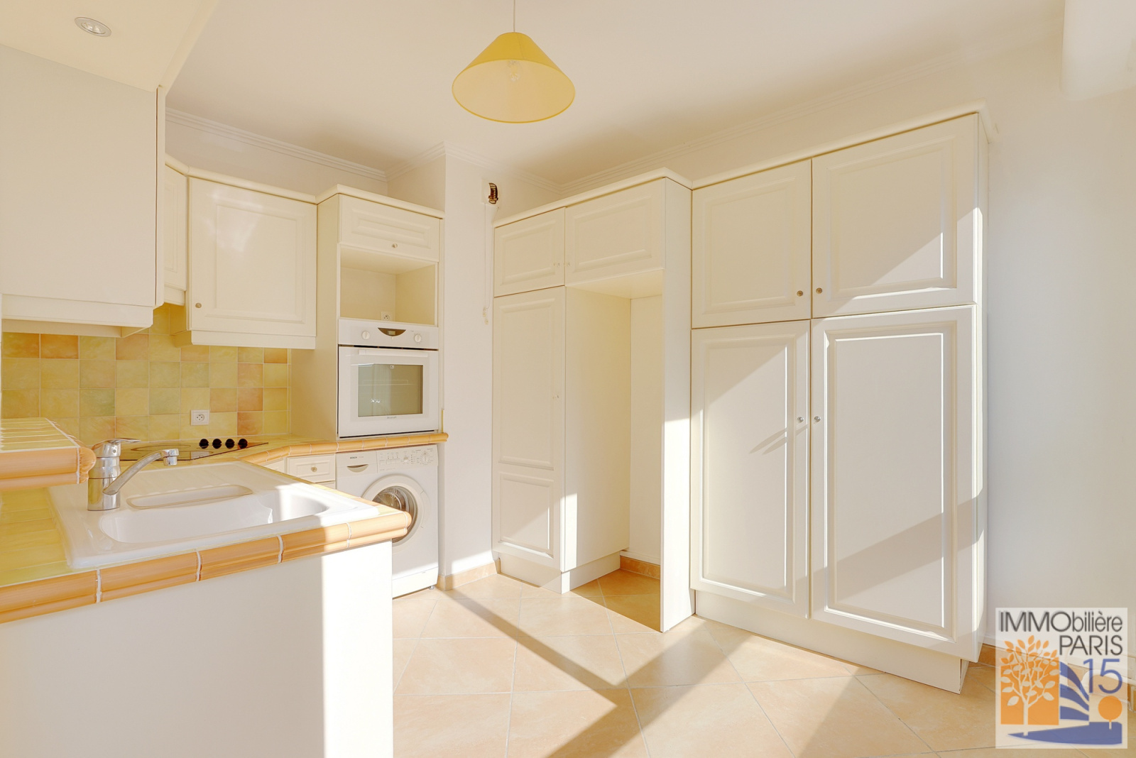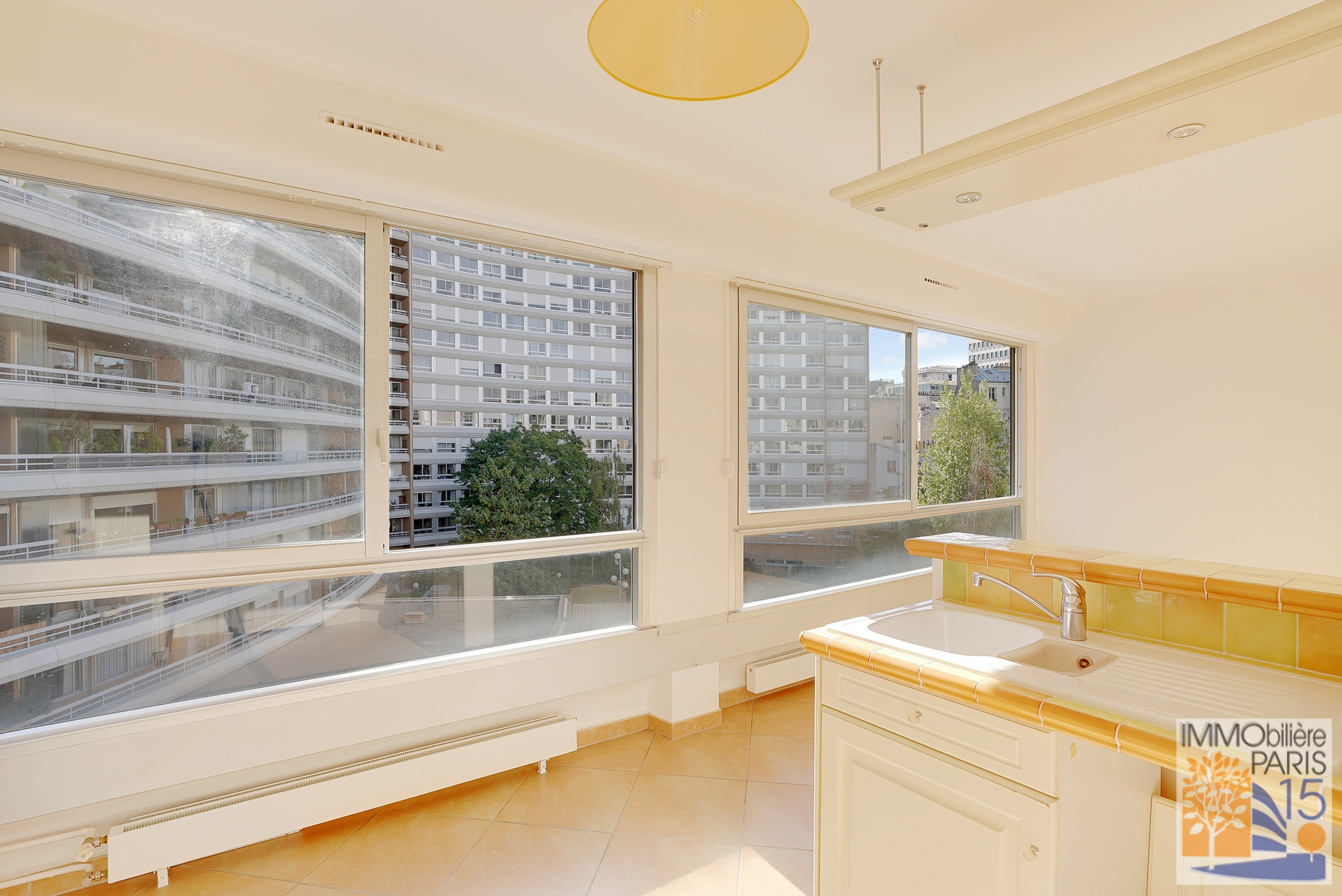 XVème Nord L'agence Immobilière Paris 15 vous propose en exclusivité un deux pièces de 48.32 m² à deux pas du métro Cambronne et des commerces, dans la résidence Armonial datant de 1976, ravalée en 2025, avec gardien ; l'appartement est situé au quatrième et dernier étage avec ascenseur comprenant : une entrée avec rangement, un séjour avec cuisine de 25.17 m² avec baies vitrées et vues dégagées Sud Est, chambre de 12 m² avec rangement, salle de bains de 4.10 m², WC indépendant. Appartement en très bon état, au calme, résidence très bien entretenu, chauffage et eau chaude collectifs, avec cave. Parking possible en plus à 25.000€