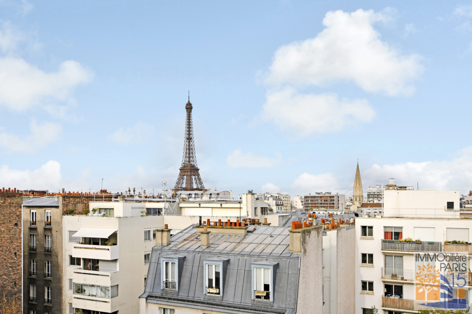 Proche du métro La Motte Picquet Grenelle dans une petite rue tranquille perpendiculaire à la rue du Commerce, appartement traversant 3 pièces de 61 m² au 7ème et dernier étage d'une résidence années 70 avec ascenseur, composé d'une entrée avec rangements, d'une cuisine indépendante, d'un cellier avec fenêtre, d'un salon séjour avec de grandes baies vitrées orienté Sud Ouest (possibilité 2ème chambre, comme à l'origine), d'une salle de bains, d'une chambre et d'un WC séparé. Chauffage et eau chaude collectifs, double vitrage, appartement vendu avec une cave en sous-sol, vues dégagées et vue sur Tour Eiffel, très lumineux, travaux de rénovation à prévoir. Possibilité d'acheter une place de parking en sous-sol pour 22.000€ en plus.