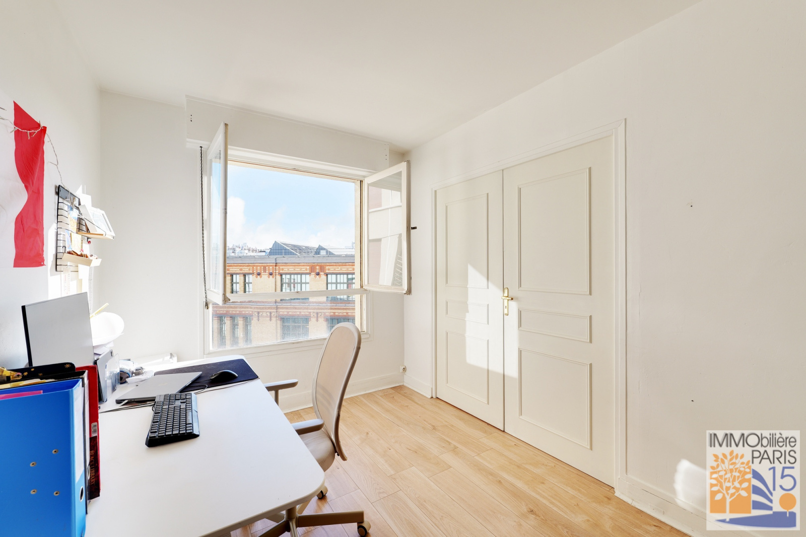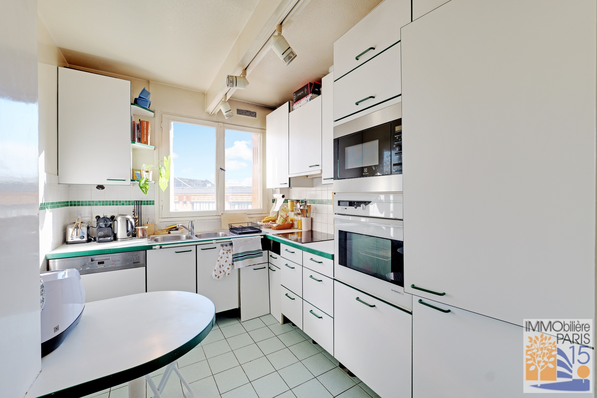 L'agence Immobilière Paris 15 vous propose, proche station Javel, cet appartement de 72.48 m², au 6ème étage avec ascenseur, et gardien. Appartement de trois pièces bien optimisé, il se compose d'une entrée, d’une cuisine équipée ouvrable sur le séjour, d'un salon/séjour très clair avec deux fenêtres, avec un coin bureau indépendant possible, de 2 chambres, d’un dressing, d'une salle d'eau et d'un WC indépendant. Très lumineux, au calme, vue dégagée. Chauffage et eau chaude collectifs, travaux de modernisation à prévoir.