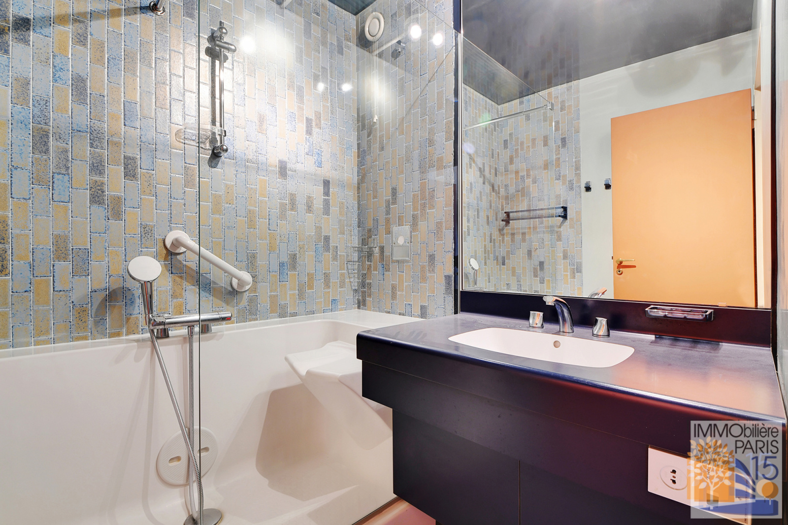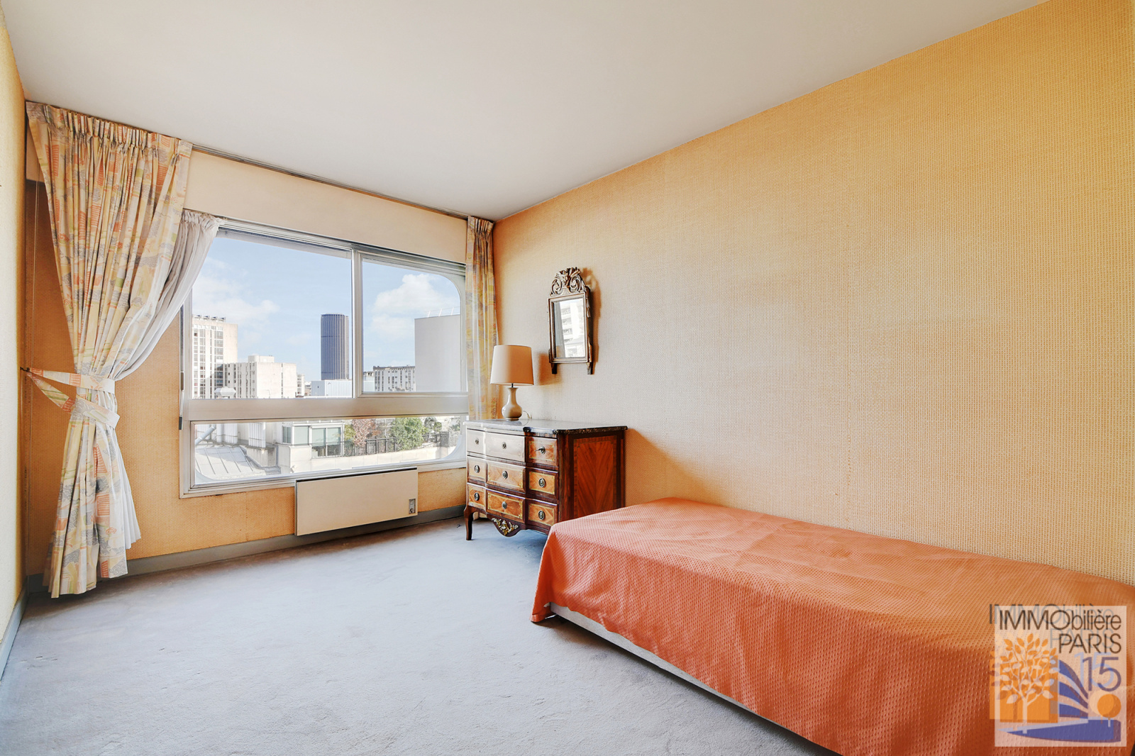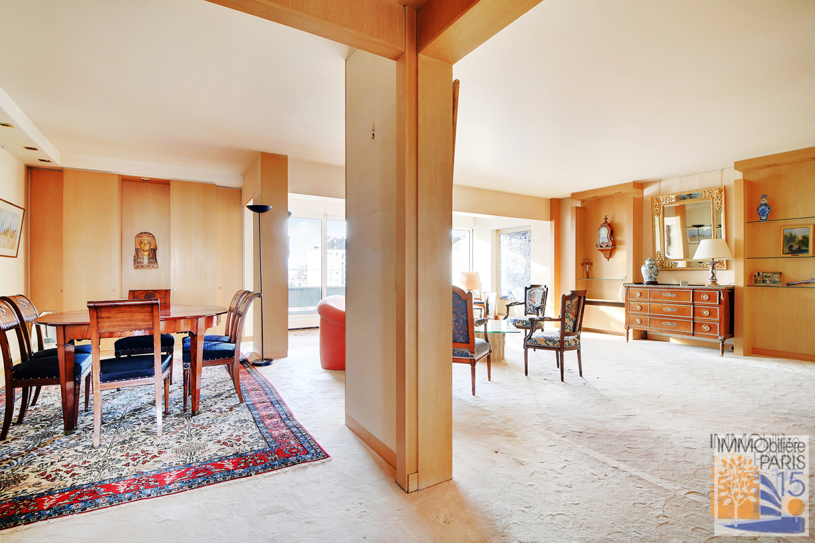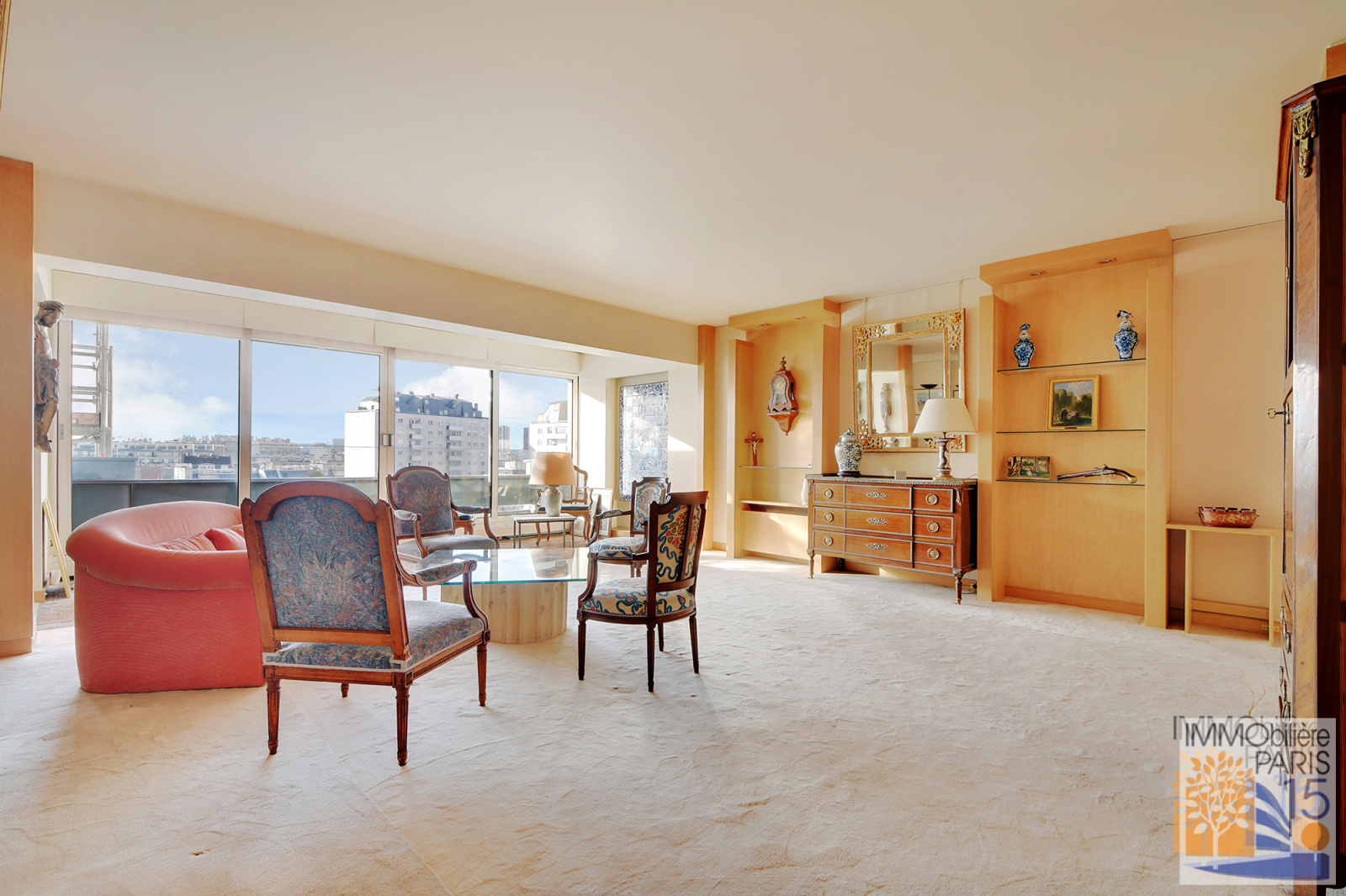 L'agence Immobilière Paris 15 vous propose en exclusivité, proche place Cambronne, transports et commerces, dans une résidence très bien entretenue avec gardiens, au 9ème étage avec ascenseur, un appartement composé de entrée, triple réception de 50 m² avec salon, salle à manger et loggia intégrée, 2 chambres dont une suite parentale, 2 salles de bains, 2 WC, cuisine dinatoire avec cellier, double exposition, vues très dégagées, 3ème chambre possible. Travaux de rénovation à prévoir, possibilité d'acquérir en sus un emplacement double de parking en sous-sol.