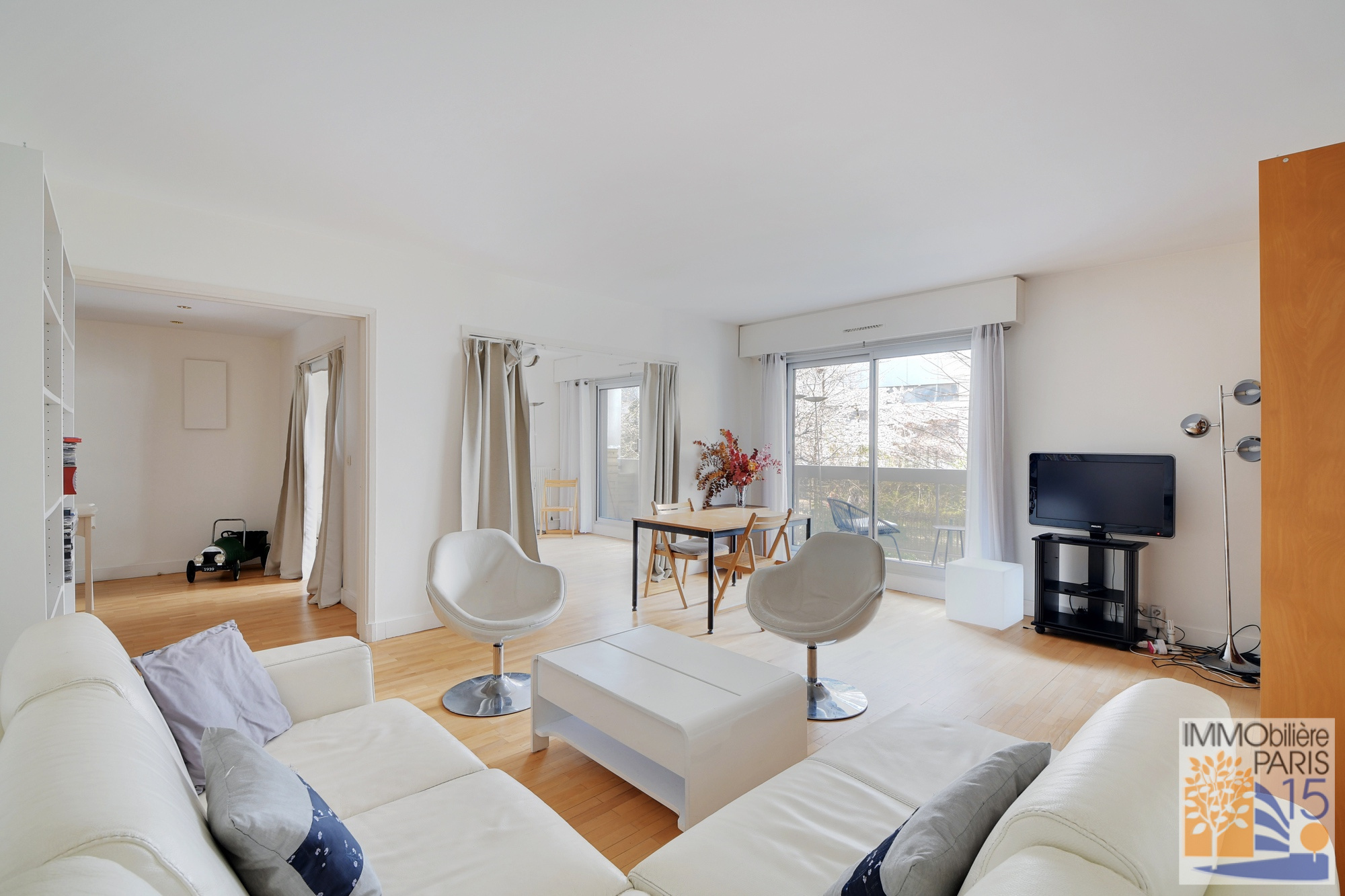 L'agence Immobilière Paris 15 vous propose ce 4 pièces de 90.57 m² sur 14 m² de loggia terrasses, dans un immeuble récent en cours de ravalement, séjour de 25 m² plus trois belles chambres ou séjour de 35 m² plus deux chambres, salle de bains, salle d'eau, 2 WC, dressing, appartement parfaitement agencé, au 1er étage, très clair sur la verdure, cave, parking possible en plus à 25.000€