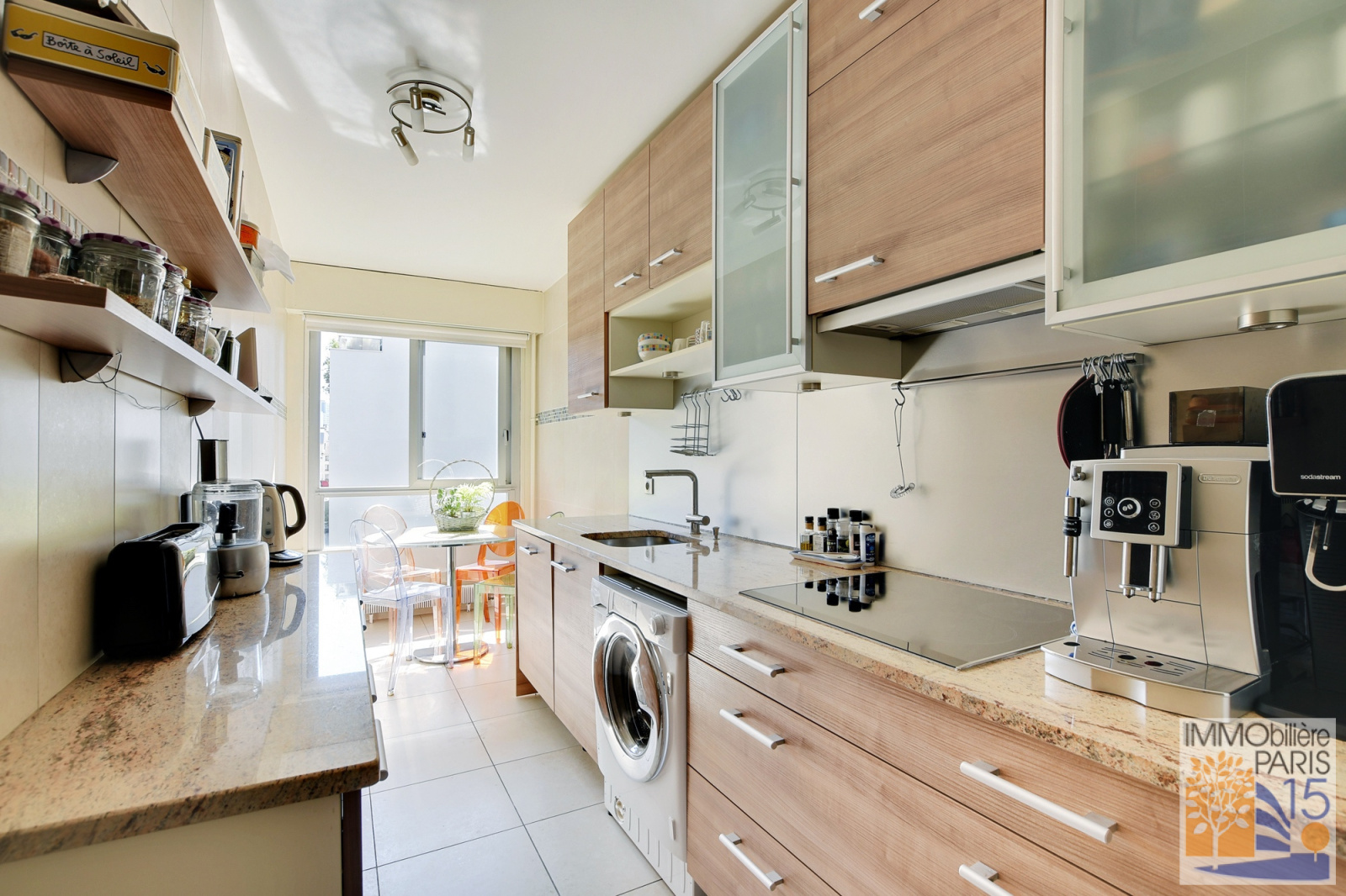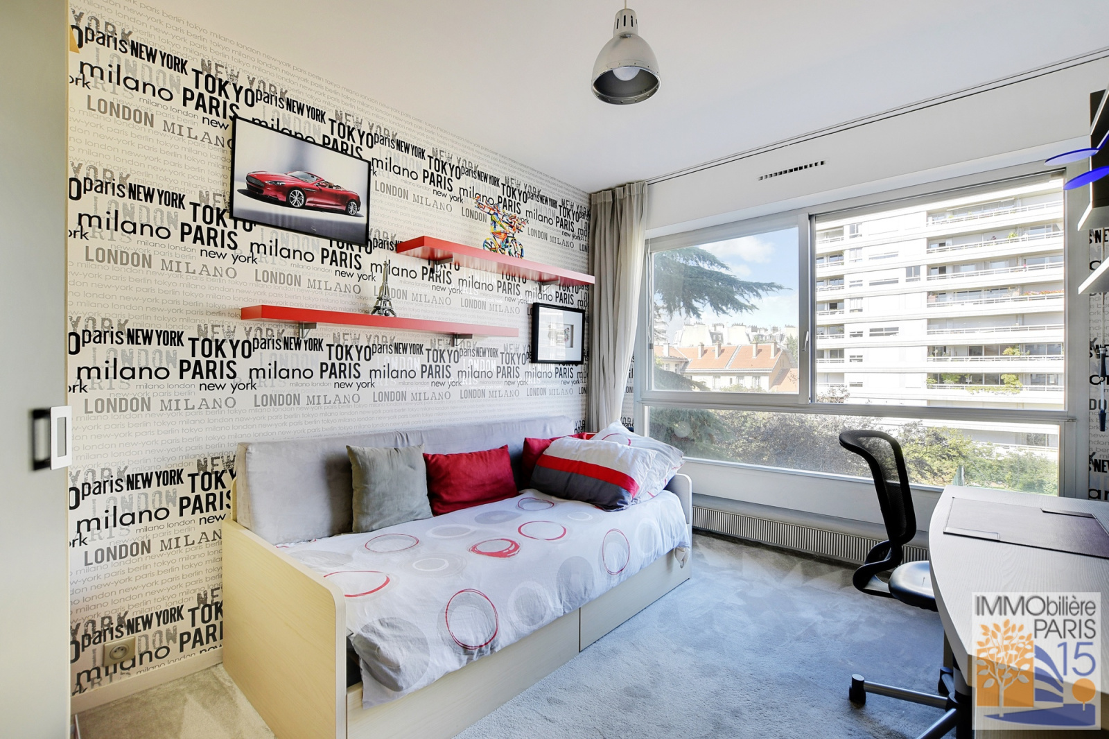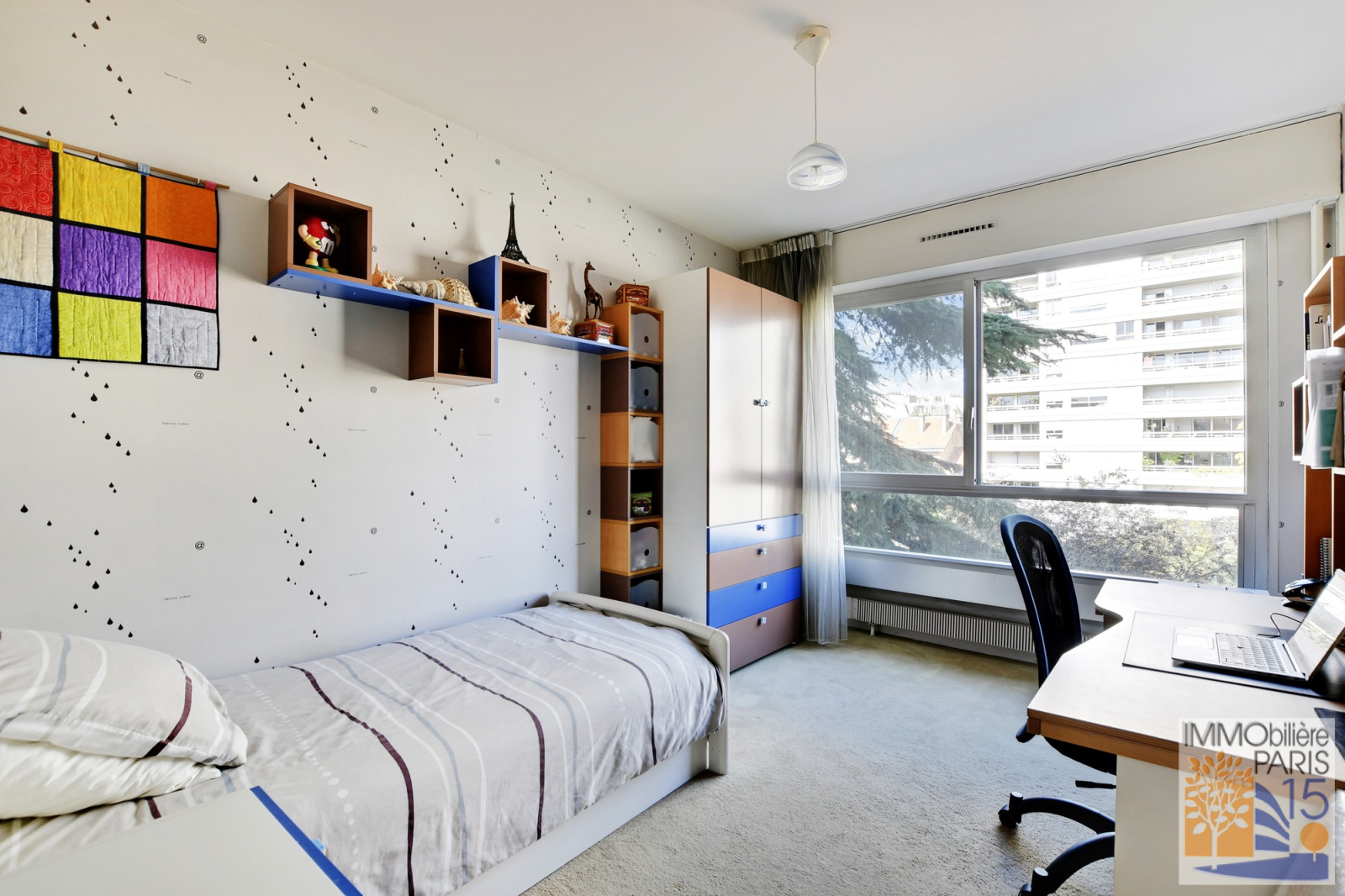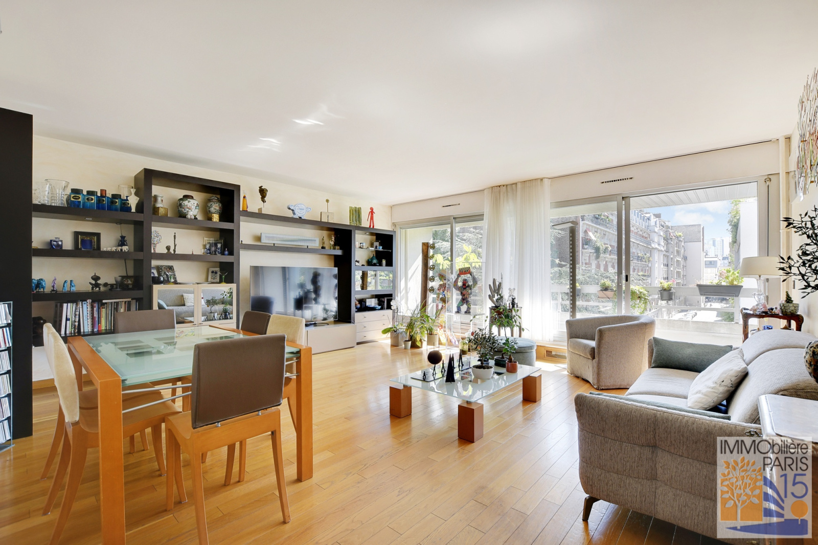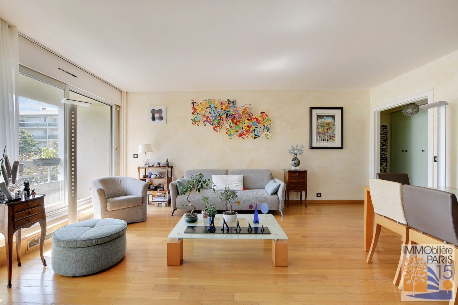 Dans la résidence Armonial de grand standing, très beau cinq pièces en étage avec ascenseurs de 120.37 m² sur 9.80 m² de loggias comprenant une belle entrée, un grand séjour sur loggia plein Sud Est et sans vis-à-vis, cuisine dinatoire, quatre chambres sur jardin et tennis dont une avec loggia, deux salles de bains, deux WC, nombreux rangements, très bon état, cave et grand parking en sous-sol inclus, rare dans le Nord du XVème arrondissement.