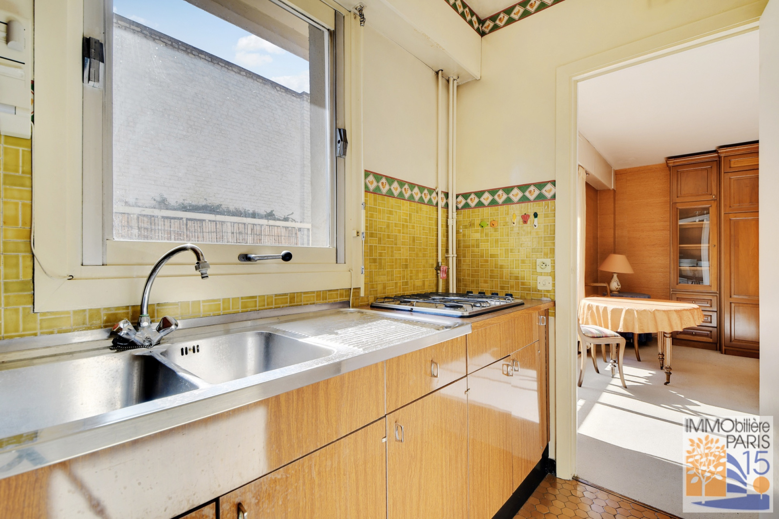L'agence Immobilière Paris 15 vous propose en exclusivité, XVème Nord, proche Place Cambronne, dans une résidence de 1972 avec gardien, au 4ème étage, un beau studio de 30.85 m² avec balcon de 5.35 m² donnant sur jardin exposé Sud Est, composé d'une entrée, d'une grande pièce à vivre de 19.68 m², d'une cuisine séparée et d'une salle de bain avec WC. L'appartement est vendu avec une cave. Chauffage et eau chaude collectifs. Possibilité d'acheter un box au sous-sol (30.000€ en plus). Environnement commerçant, très bien desservi par les transports, modernisation à prévoir.