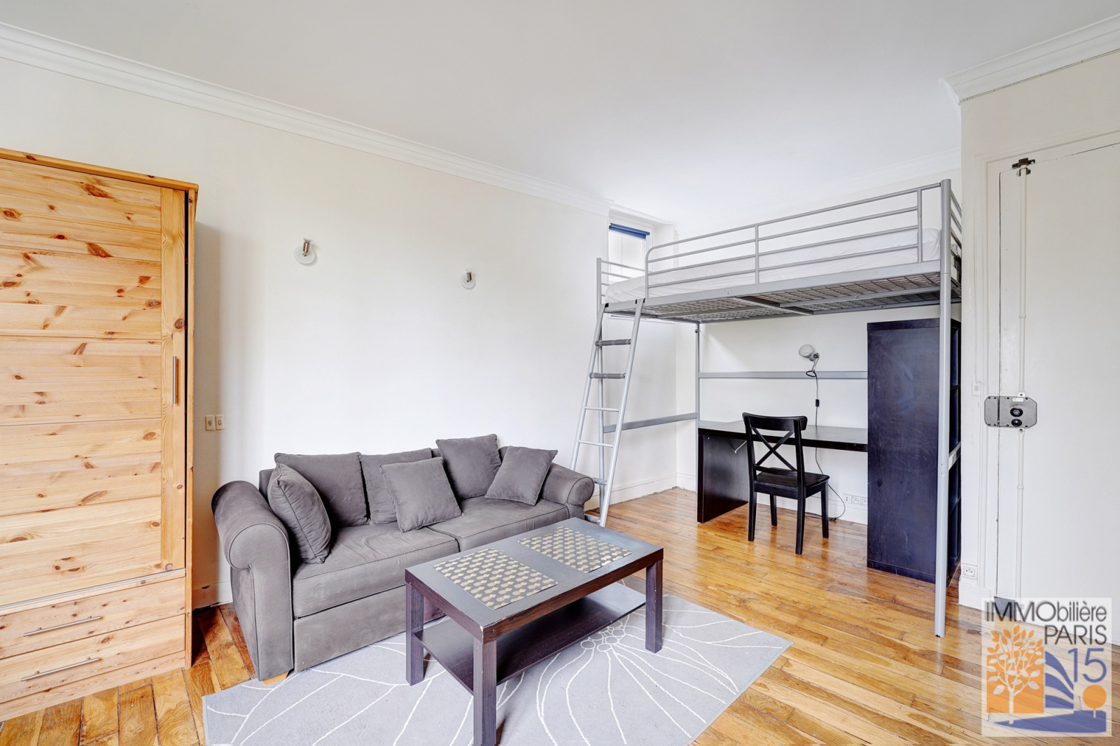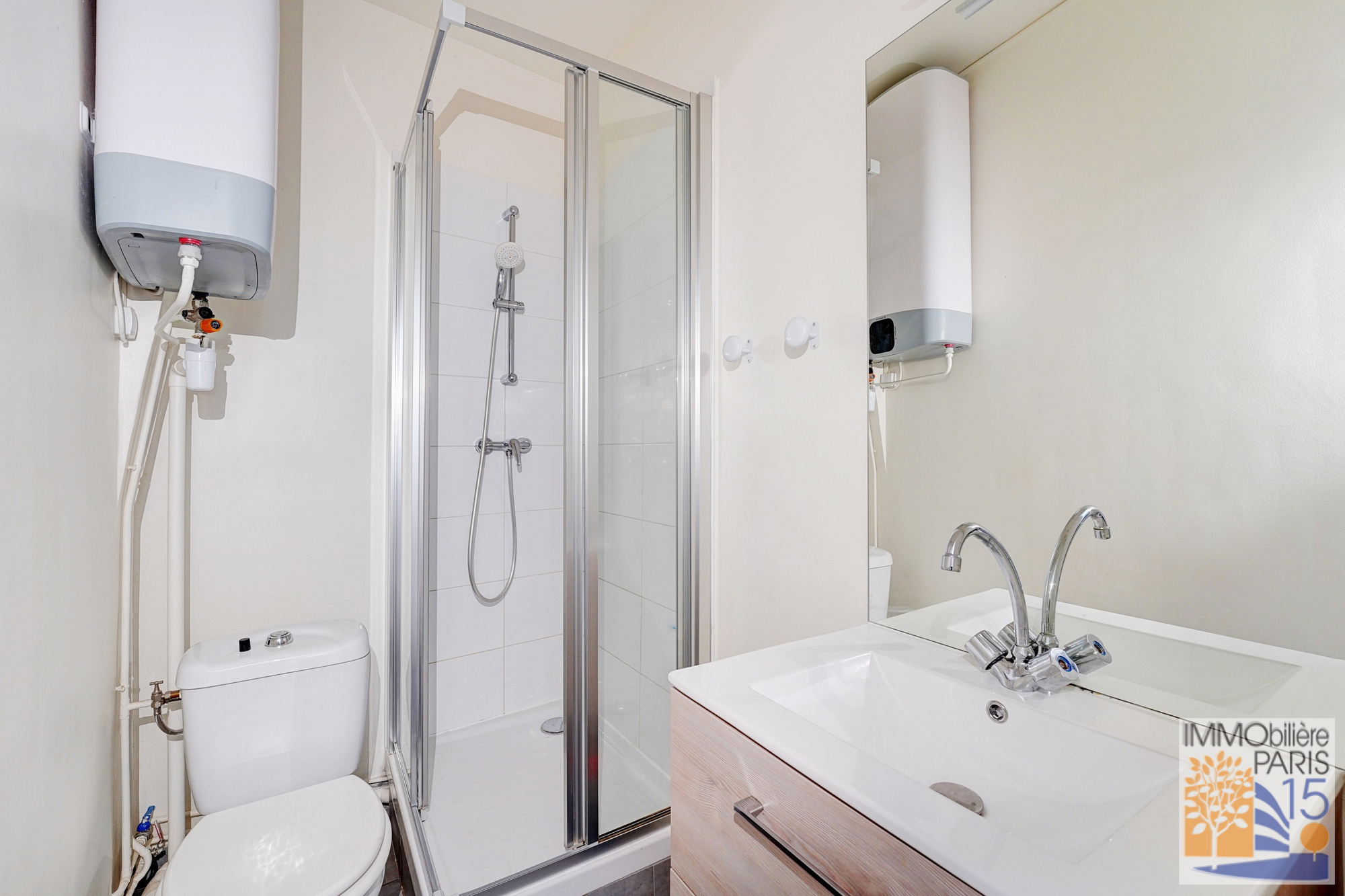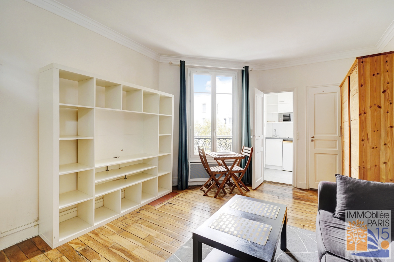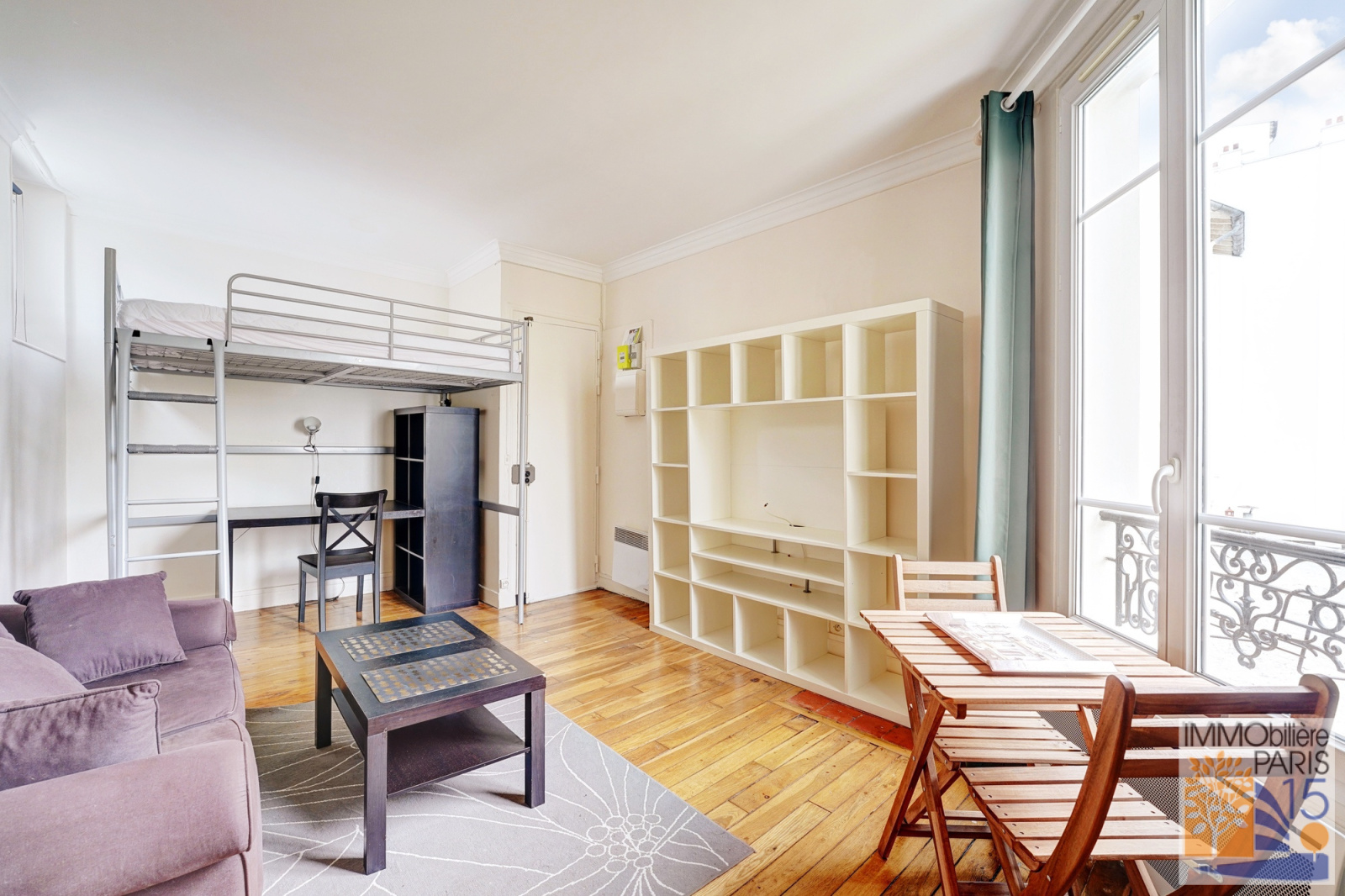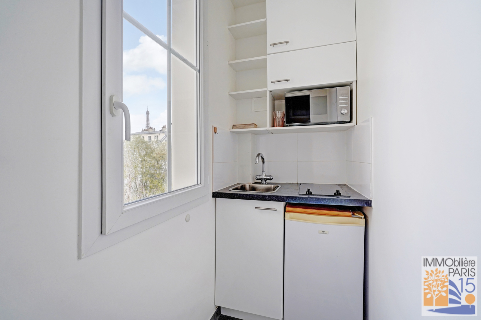L'agence Immobilière Paris 15 vous propose en exclusivité un très beau studio, en parfait état, au calme sur jardin avec vue Tour Eiffel, au 3ème étage, comprenant une belle pièce principale de 17.60 m² avec deux fenêtres, une cuisine avec fenêtre, une salle d'eau avec WC. Appartement sans perte de place dans un quartier animé et commerçant, habitable de suite. Chauffage individuel par radiateurs électriques et eau chauffée par ballon électrique.